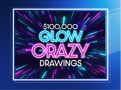 A winner is chosen every 15 minutes. Each winner will receive $100 to $1,000 in progressive E-CASH and 100 bonus tickets to the $20,000 NYE Glow Crazy Grand Finale for a chance to win $10K in E-CASH!