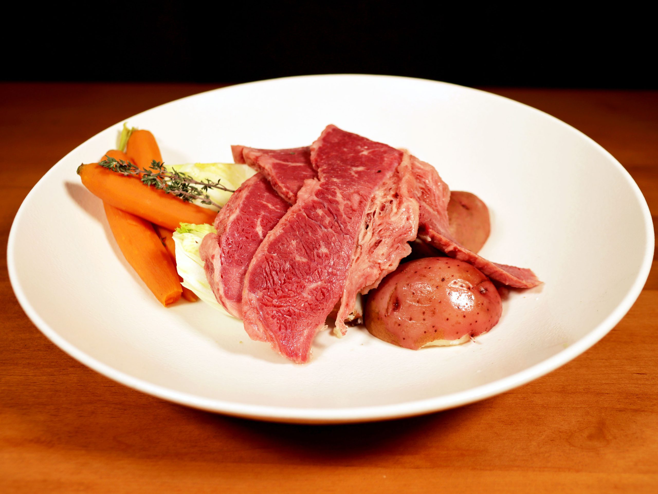 - $18three eggs any style, our signature shredded corned beef and idaho potatoes, choice of toast